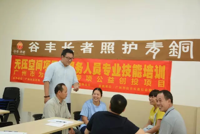 2017年9月11日,新一屆谷豐長(zhǎng)者照護(hù)青銅培訓(xùn)班暨谷豐職業(yè)培訓(xùn)學(xué)校廣州為老服務(wù)專項(xiàng)公益創(chuàng)投項(xiàng)目無(wú)壓空間項(xiàng)目—服務(wù)人員專業(yè)技能培訓(xùn)在谷豐職業(yè)學(xué)校203教室正式開班!