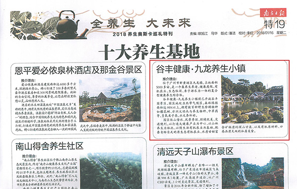 谷豐健康?九龍養(yǎng)生小鎮(zhèn)被評為養(yǎng)生奧斯卡?南方十大養(yǎng)生基地