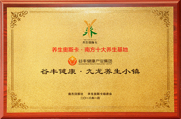 谷豐健康?九龍養(yǎng)生小鎮(zhèn)獲獎牌匾