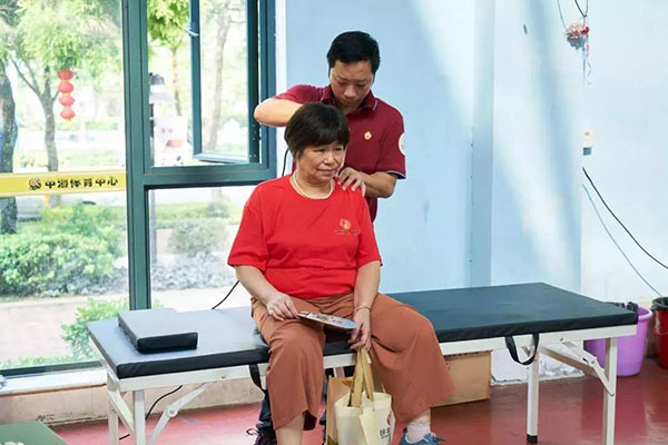 資深康復(fù)師在為長(zhǎng)者提供康復(fù)理療體驗(yàn)服務(wù)