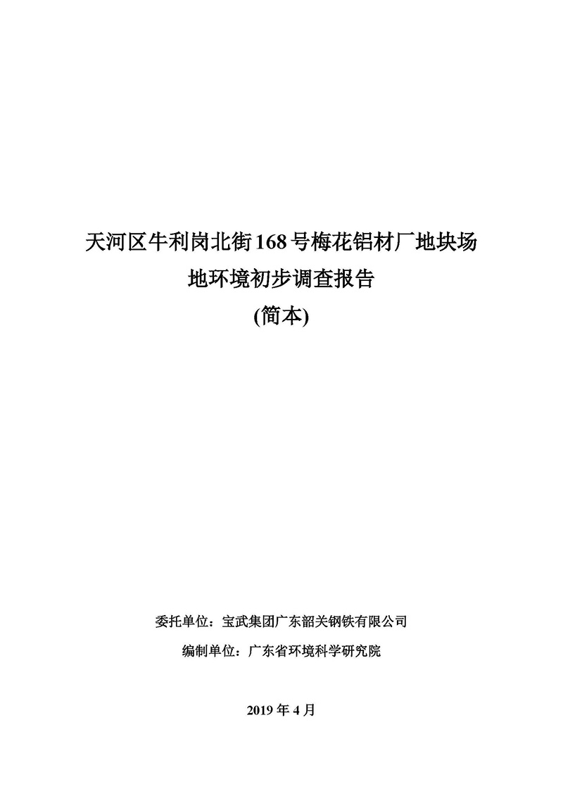 天河區(qū)牛利崗北街168號梅花鋁材廠地塊場地環(huán)境初步調(diào)查報告(簡本)