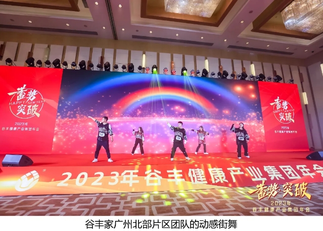 在莊重而熱烈的頒獎(jiǎng)典禮結(jié)束之后,夜幕降臨,谷豐年會(huì)晚宴的序幕緩緩拉開。谷豐藝術(shù)團(tuán)的精彩表演以及谷豐家廣州北部片區(qū)團(tuán)隊(duì)的動(dòng)感街舞,不僅為在場(chǎng)的人們帶來(lái)了歡聲笑語(yǔ),更將谷豐人彼此的心緊緊相連。