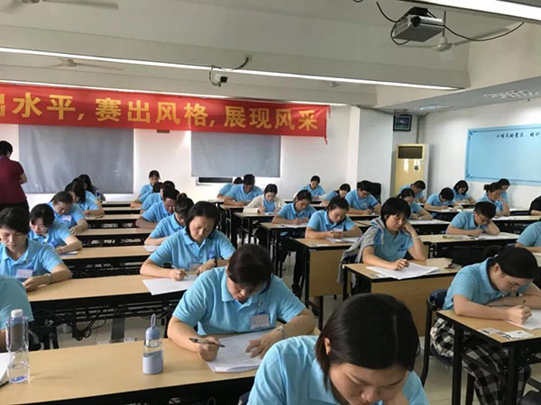 理論知識(shí)競(jìng)賽開始,各參賽選手正在認(rèn)真做題